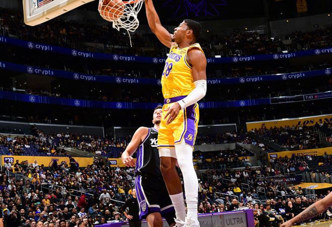 本场比赛最终比分为116-117,湖人还输了。简单回顾一下比赛。国王这边包括萨博尼斯+蒙克+穆雷+德罗赞都不打,除了施罗德,就相当于第二阵容。开场拉文后仰三分,克利福德骑马射箭。东契奇和八村塁下起三分雨,国王球员冲到篮下就能轻松得分,就连尤班克斯都玩起花活,背转身+假动作后勾手打进。中段八村塁和斯马特继续扔三分球,埃利斯和拉文带队打出小高潮,第一节国王还领先湖人2分。第二节文森特抢断拉文快攻上篮,助攻海斯顺下暴扣,随后又中两记三分球,文森特带队强行反超比分,太犀利了。